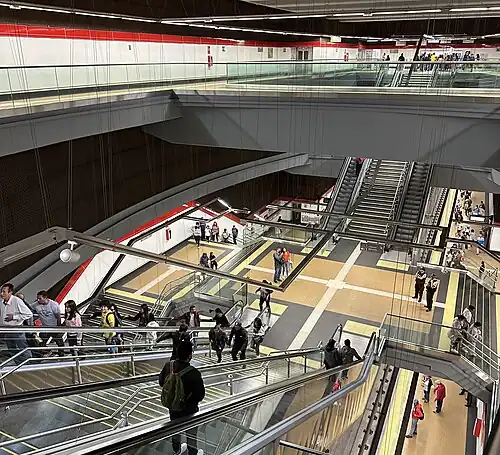 El Recreo is a Quito Metro station. It was officially opened on 21 December 2022 as part of the inaugural section of the system between Quitumbe and El Labrador. The revenue service started on 2 May 2023 and stopped on 11 May 2023.[1] It resumed on 1 December 2023.[2] The station is located between La Magdalena and Cardenal de la Torre.[1]