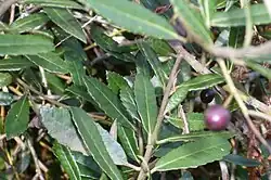 Black olive berry growing as a hemiepiphyte on a soft tree fern at Devil's Creek, South East Forest National Park -