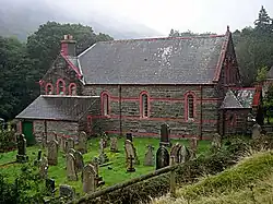 Elan Village (Welsh: Pentre Elan) is a small purpose-built community in Powys, Wales. It was designed by architect Herbert Tudor Buckland as part of Birmingham Corporation's scheme to construct a series of water supply reservoirs in the Elan Valley between 1892 and 1904. It housed workers and their families responsible for maintaining the scheme's dams and the filtration systems.[1] Elan Village is the only purpose-built Arts and Crafts "model village" in Wales.