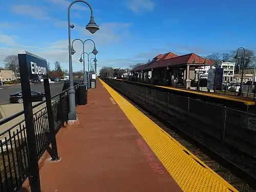![]() The Elberon station facing north from the southern end of the Bay Head-bound platform in January 2018. | |||||||||||||
