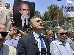 Ali Karimli, the chairman of the APFP, considers himself an Elchibeyist.[18] However, political figures such as CPFP Chairman Mirmahmud Miralioglu, Azerbaijan Democrat Party Chairman Sardar Jalaloglu, Unity Party Chairman Tahir Karimli,[19] Azerbaijan Nationalist Democratic "Grey Wolf" Party (AMDP) member of the organizing committee for congress preparation Safar Humbatov,[20] and APFP member Namig Sadigli[21] refuted his statements. Furthermore, in June 2017, some members of the APFP resigned from the party citing the suppression of Elchibeyism within the party.[22] According to the politician Ogtay Gulaliyev, there were those who turned away from ideals of the movement to get positions within the state, mandate, money, status, luxurious living by calling themselves Elchibeyist.[11]