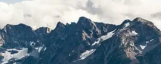 Elija Ridge is a prominent 7,739 ft (2,360 m) ridge located in North Cascades National Park, in Whatcom County of Washington state.[3] It is part of the North Cascades which is a subset of the Cascade Range. The highest point is called Elija Peak, and another peak on this ridge with sufficient prominence to qualify as a separate summit is called Ezekiel, (7,521 ft; 2,292 m).[4][5] The nearest higher neighbor is Gabriel Peak, 1.9 miles (3.1 km) to the southeast, Beebe Mountain is set 1.86 miles (2.99 km) to the northeast, and Ruby Mountain is 4.86 miles (7.82 km) to the northwest.[1] Precipitation runoff from this ridge drains to Ross Lake via Panther Creek. This geographical feature is named after the prophet Elija, which is a reference to Tommy Rowland who settled in the Skagit River area in 1895 and later pronounced himself the "Prophet Elisha."[6] Gabriel Peak, Genesis Peak, and Mount Prophet are also named in association with Rowland.