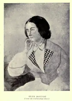 Eliza Ashurst was a dear friend of the Italian nationalist Giuseppe Mazzini until her early death.[10][11] Mazzini and the Ashurst family grew close, and Mazzini considered himself part of the Ashurst family, calling the Ashurst daughters "sister".[12] Eliza, though, may have wished to have been more than a loving sister.[13][nb 1] His letters to her are reprinted in E. F. Richards' collection: Mazzini's Letters to an English Family.[16]