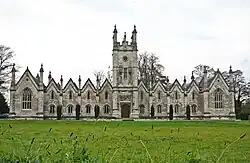 Elizabeth and her sister were very active in their community, rebuilding a church at Garforth and homes in the local area. They were thought to be very charitable.[3] In 1844 the Gascoigne sisters commissioned the building of almshouses on the old Great North Road (A1) to commemorate the memory of their father and two brothers.[4] The homes were built for four people, two men and two women, retired tenants of the Gascoigne estate.[4] The building featured stained-glass windows believed to have been designed by the sisters, which were featured in an exhibition in 2004 at Lotherton Hall.[5] Additionally, during the Great Famine of 1846–1847 they travelled to Ireland to help out the workers of Castle Oliver, an estate owned by their father.[6]
