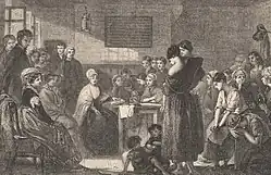 The proposal met with general support and the first Elizabeth Fry refuge opened its doors in 1849 in the London Borough of Hackney [33] – initially in a temporary location and then, from 1860, in a fine late-17th-century town house nearby at 195 Mare Street, which the refuge purchased and occupied for the next half century.[34] It was intended to provide temporary shelter for young women discharged from metropolitan gaols or police offices. Funding came via subscriptions from various city companies and private individuals, supplemented by income from the inmates' laundry and needlework. Such training was an important part of the refuge's work.