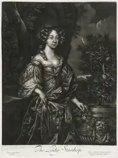 ![]() Portrait of Lady Elizabeth Stanhope in mezzotint c.1680-84, published by Alexander Browne after Sir Peter Lely | |
