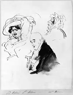Holland became known by her guests and contemporary observers for her domineering nature, in contrast to her husband.[8] In his journals, Sydney Smith, a friend of both Lord and Lady Holland, called her a "formidable woman".[9] Actress Fanny Kemble visited Holland House with her sister Adelaide Kemble and described what she called the "domineering rudeness" of Lady Holland.[10] Lady Holland's rule extended not only to all of the guests at Holland House but to Lord Holland too. She dictated when he should go to bed, what he should wear, and would have servants take him away from the table in his wheelchair when he was in the middle of telling a story.[11][12]