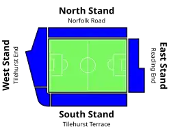 | Renovated | Norfolk Road: 1926, 1986 Town End: 1931 South Bank: 1936, 1949, 1956 Tilehurst End: 1957 Floodlights: 1954, 1969 |