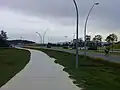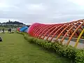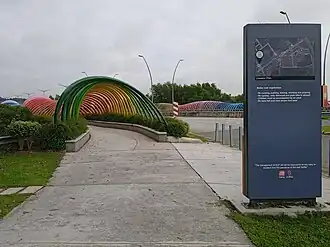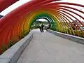 Elmina Rainbow Bridge (Malay: Jambatan Pelangi Elmina) is the rainbow pedestrian bridge in the City of Elmina, Shah Alam, Selangor, Malaysia. It has two bridges along the Persiaran Dillena and is maintained by Sime Darby Property.[1] In addition, the rainbow bridge about one km (0.62 mi) away from the Elmina Central Park, the rainbow colours and unique architecture has attracted countless visitors to take pictures. In addition, the area is surrounded by greenery, and it has also become a picnic spot for picnic. In fact, the rainbow bridge is a sidewalk built on both sides of the road, embellishing the monotonous sidewalk, and playing a finishing touch.[2]