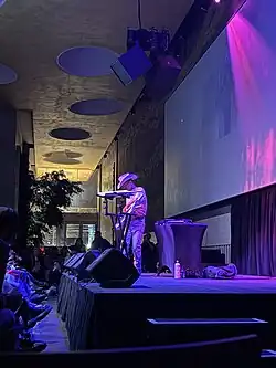 Chuquimamani-Condori performing at the David Rubenstein Atrium in Lincoln Center in 2024