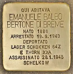 - ^ "A Torino otto nuove pietre d'inciampo per non dimenticare". January 24, 2018.