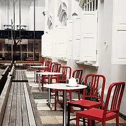 Emeco was sold that year to Jay Buchbinder who tried unsuccessfully to revive the military end of the business.[3] Buchbinder's son, Gregg, acquired Emeco from his father in 1998.[8] He noticed that Giorgio Armani and other designers showed an interest in the 1006 chair,[9] so he decided to focus on those and similar products.[6][10] In 1999 the company posted a profit for the first time in more than 20 years.[3] Gregg met French designer Philippe Starck at the 1998 International Contemporary Furniture Fair (ICFF)[11] and the two agreed to collaborate on numerous designer versions of the 1006 Navy chair.[12] By 2004 these accounted for half of Emeco's production, or 46,500 chairs per year.[8]