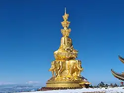 Mount Emei is one of the Four Sacred Buddhist Mountains of China, and is traditionally regarded as the bodhimaṇḍa, or place of enlightenment, of the Bodhisattva Puxian (普賢菩薩; Samantabhadra).