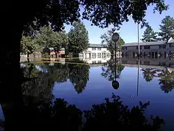 There are several types of flooding that can occur and although some geographic regions are more prone to flooding, this type of disaster can happen anywhere. Coastal, riverine, estuarine, and human induced flooding are just a few of the types that can occur. Coastal flooding can occur as a result of heavy rains or other disasters like hurricanes or tsunamis. Riverine and estuarine floods can occur inland and in coastal areas as a result of run off, hurricanes, heavy rains, and other factors. In many cases low-lying areas near bodies of water or with insufficient drainage solutions are more susceptible to being damaged by flooding first, but universities evaluate all areas of their campus that could potentially be damaged by heavy rains and other problems that come with flooding. Several Universities have been the victims of dangerous flooding that has adverse effects on property and loss of life. In 2011 Hurricane Irene left several New England college campuses and surrounding areas damaged from flood waters.[16] Castleton State College's athletic building was so severely damaged that it will have to be gutted and renovated. All five of Vermont's state colleges lost internet connection when the Winooski River flooded and overpowered the Web Services Center.[17] Wheaton College in Norton, Massachusetts experienced power outages and flooding, which forced them to send students home. Plymouth State University in New Hampshire suffered flood damages to its new Ice arena and Welcome Center as well as many of its facilities building.