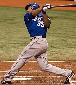 Although he struggled in limited playing time early in his career, Brown was a more effective hitter in his thirties. From 2005 on, he batted .290 against left-handed pitchers and .260 versus right-handed pitchers.[10] Brown's career on base percentage was .323. Although not a pure power hitter, Brown earned a reputation for driving in runs during his time with the Athletics and Royals.[11] He led the Royals in RBI in each of his three seasons in Kansas City.