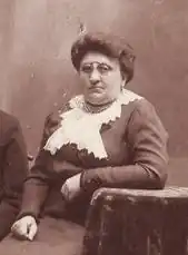 When World War I started in August 1914, Vileišienė was one of the founders of the Lithuanian Committee of Vilnius, the first Lithuanian organization that provided aid to war refugees.[5] The committee was absorbed by the Lithuanian Society for the Relief of War Sufferers and she was elected to its board.[6] She toured various cities and towns in Lithuania collecting donations, establishing local chapters, organizing new shelters.[2] In May 1915, she attended a meeting of the Tatiana Committee during which she was introduced to Empress Alexandra Feodorovna.[7] When Vilnius was occupied by the Germans, General Alexei von Pfeil issued a proclamation that depicted Vilnius as a "pearl" of Poland. Vileišienė together with Jonas Basanavičius and Jonas Kymantas visited von Pfeil to protest the proclamation and explain that Vilnius was the capital of the Grand Duchy of Lithuania not of Poland.[2][6]