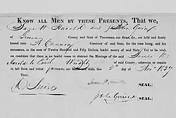 - ^ "Jas W Harrold and Emily Wright, 02 Nov 1837", Tennessee, County Marriages, 1790-1950, 2021, FHL microfilm 1,148,738 – via FamilySearch,