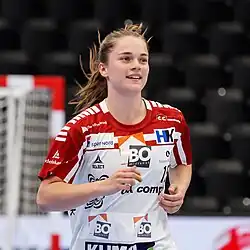 She represented Denmark at the 2021 World Women's Handball Championship in Spain[11] and at the 2023 World Women's Handball Championship at home, where Denmark won bronze medals on both occasions. At the 2022 European Championship she won silver medals.[12] At the 2024 Olympics she won a bronze medal.[13] Later the same year, she won silver medals at the 2024 European Championship, losing to Norway in the final.[14]
