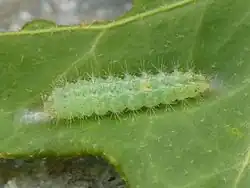The larvae feed from May to September in two overlapping generations.[1] They mainly feed on Convolvulaceae species, including hedge bindweed (Calystegia sepium), low false bindweed (Calystegia spithamaea), sea bindweed (Calystegia soldanella), field bindweed (Convolvulus arvensis), Cantabrican morning glory (Convolvulus cantabrica), Convolvulus floridus, Convolvulus prostratus, dwarf morning-glory (Convolvulus tricolor), sweet potato (Ipomoea batatas), Ipomoea eriocarpa and common morning-glory (Ipomoea purpurea). They also feed on Atriplex species, including common orache (Atriplex patula) and Chenopodium, including fat-hen (Chenopodium album) from the family Amaranthaceae, cardoon (Cynara cardunculus) from the family Asteraceae, and thorn apple (Datura stramonium) and henbane (Hyoscyamus niger) from the family Solanaceae.[4]
