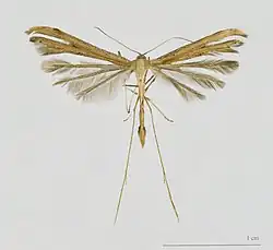- ^ Kim, Sora; Byun, Bong-Kyu; Park, Kyu-Tek; Lee, Seunghwan (2010-05-24). "Taxonomic study of the tribe Oidaematophorini (Lepidoptera: Pterophoridae) from Korea, with descriptions of the two new species". Journal of Natural History. 44 (23–24): 1377–1399. Bibcode:2010JNatH..44.1377K. doi:10.1080/00222931003679006.