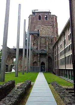 In a charter made in Capua, 26 July 982, "on the day that we fight the Saracens" Otto II certified that if a certain "Cunradus, son of the late count Rudolf" died, he wanted his possessions in Lotharingia to go to Gorze Abbey, and these included "curtis Velm in pago Haspongowe et in comitate Eremfridi comitis". Velm is walking distance from Gelmen and Brustem.[22] In the Battle of Cotrone itself (13 July 982, so it had already happened) it seems that both this Conrad, and this count Eremfried, lost their lives. Velm, now part of St Truiden, did come under Gorze Abbey, and a Count Irimfrid was recorded as dying.[23] However, this Conrad's possessions were widespread, and on the basis of those Vanderkindere (1902 pp. 340–1) believes his father was Rodolphe Count of Ivois. Of this Count however, Vanderkindere (p. 342) says that given his connection to Velm it is "not without some likelihood" that he is a member of the Regnarid family, where the name Rodolphe was familiar.[24] According to Aarts (1994 fn.103) Ulrich Nonn believes the count Eremfrid in Haspengouw here is the same as the one who had been advocatus of Stavelot. Gorze Abbey was associated with the Abbeys of both Gembloux and St Truiden.