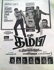 En Thambi (transl. My Younger Brother) is a 1968 Indian Tamil-language film, directed by A. C. Tirulokchandar. The film stars Sivaji Ganesan and B. Saroja Devi, with K. Balaji and Nagesh in supporting roles.[1] It is a remake of the 1966 Telugu film Aastiparulu.[2] The film became a commercial success, running for over 100 days in theatres.[3]