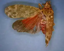 - ^ a b c d Naskrecki, P.; Nishida, K. (2007). "Novel trophobiotic interactions in lantern bugs (Insecta: Auchenorrhyncha: Fulgoridae)" (PDF). Journal of Natural History. 41 (37–40): 2397. doi:10.1080/00222930701633570. S2CID 54791767.