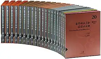 Encyclopedia of Buddhist Arts (Chinese: 世界佛教美術圖說大辭典; pinyin: Shìjiè fójiào měishù túshuō dà cídiǎn) is a set of books that was started by the founder of Fo Guang Shan, Venerable Master Hsing Yun. The project started in 2001 and was completed in March 2013. There are 20 volumes in total and the artwork spans all 5 continents with information from more than 30 countries. The project was made possible with the help of numerous scholars and volunteers, 300 monastics, 140 scholars from 16 different countries, and more than 400 volunteers. Fo Guang Shan has donated copies of the encyclopedia to libraries and academic institutions across the world.[1][2][3][4][5]