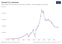 - ^ Our World in Data (20 June 2024). "Per capita CO2 emissions: Sweden, World". Retrieved 7 July 2024.