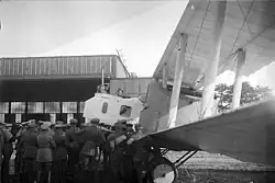 Having received a favourable weather forecast for the following day, 25 May, Brandenburg issued orders for the first Gotha attack on London. Twenty-three bombers took off at 2 pm and refuelled at Nieuwmunster near Zuienkerke on the Belgian coast, so that they had enough fuel to approach by a circuitous route over the North Sea. One aircraft dropped out with engine failure almost immediately and another turned back near the English coast.[16] On the approach to London it was found that there was a thick cloud cover over the whole area and so on the return route, the coastal town of Folkestone and the army camp at Shorncliffe were attacked. There was no warning given to those on the ground and casualties totalled 95 dead and 195 injured,[17] including many women and children who had been queuing outside shops in Tontine Street.[18] British opposition, equipped and organised to oppose nocturnal airship raids, had been largely ineffective; Sir John French, who was in overall command of home defence, had previously ordered that only coastal anti-aircraft guns could fire at hostile aircraft, and although 70 fighters had taken off, only two actually sighted the bombers. However, RNAS fighters from Dunkirk intercepted the returning formation and shot down one into the Channel, while another crashed on landing.[19] Retaliatory British raids were made on the airfield at Saint-Denijs on 28 May and 4 June but caused little damage..[20] On 5 June, a second raid on London was rerouted before takeoff to Sheerness Dockyard because of a bad weather forecast; one Gotha was shot down into the Thames Estuary by anti-aircraft fire.[21] Several small vessels were sunk in the docks and an ammunition store exploded; 13 were killed and 34 wounded, mostly military personnel.[22]
