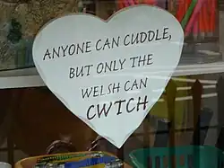 - cwtch (a hiding place or cubby hole) is also from Welsh (albeit a recent word influenced by English, and used almost exclusively in the variant of English spoken in Wales, not in standard English), and crwth and cwtch are the longest English dictionary words without ⟨a, e, i, o, u, y⟩ according to Collins Dictionary.[7]