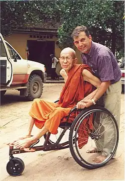 In 1991, in Phnom Penh, he founded Banteay Prieb ("The Dove House") where children maimed by landmines receive education and people with disabilities can make wheelchairs following the Mekong model (a wooden wheelchair with three wheels).[4]