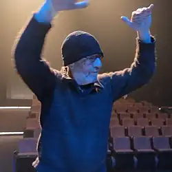 Edelstein conducts the musicians with a new system 3-dimensional models that he has created.[2] With this specially developed system of hand signals he can designate timbrical and spatial options as well as time and intensity. All the ENS are composers as well as musicians so can respond with high precision to Edelstein's directions, to the point that it is as if his hands have censors attached to the musicians.[3]