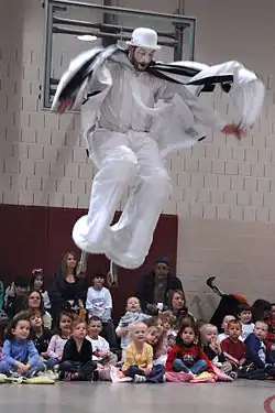 Entertainment is also provided to children or taught to them by adults. A children's entertainer or performer is a professional whose job it is to entertain children. The term can be used to describe a children's musician or television presenter,[41][42] but encompasses a wide range of specializations, including magicians, costumed performers, puppeteers and party princesses.[43][44] Many activities that appeal to children such as puppets, clowns, pantomimes and cartoons are also enjoyed by adults.[45][46]