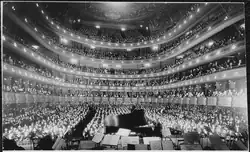 A full house at the Metropolitan Opera in New York City, waiting for a musical entertainment to begin (1937)