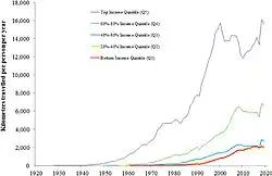 In 1992, aircraft emissions represented 2% of all man-made CO2 emissions, having accumulated a little more than 1% of the total man-made CO2 increase over 50 years.[10] By 2015, aviation accounted for 2.5% of global CO2 emissions.[23] In 2018, global commercial operations emitted 918 million tonnes (Mt) of CO2, 2.4% of all CO2 emissions: 747 Mt for passenger transport and 171 Mt for freight operations.[3] Between 1960 and 2018, CO2 emissions increased 6.8 times from 152 to 1,034 million tonnes per year.[1] Emissions from flights rose by 32% between 2013 and 2018.[24]
