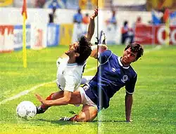 Although Francescoli's role in the team was disputed during a low point in his international career, he showed he was still an important player for the national team, and appeared for Uruguay in the qualifying rounds for the 1994 World Cup.[24] Uruguay reached the CONMEBOL Group 2 final round of the South American qualifiers, along with Bolivia, Brazil and the two wildcard teams Ecuador and Venezuela. Uruguay, Bolivia and Brazil each had ten points in the group, and Brazil and Uruguay faced each other at the Maracanã on 19 September 1993. Uruguay lost the match 2–0, as Brazil topped the group to qualify for the upcoming tournament. As Bolivia was able to earn a draw in their fixture, the Uruguayans came third in the group, failing to qualify for the competition. Although the team failed to qualify for the upcoming World Cup in the United States, Francescoli overcame one of his biggest struggles throughout his career as after two years, national team's coach Cubilla was relieved of his position. After the defeat against Brazil at the Maracanã in Uruguay's final qualification match, Cubilla had said of Francescoli, "That man is a traitor to his country, so take away his passport!" Francescoli later stated in a 2008 interview that this was a low point in his career, and that his coach's comment caused him sit in a corner of the Maracanã and cry.[31]