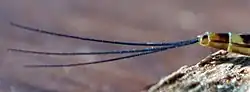 Females fly on the surface of the water and dip their abdomen onto the surface to lay eggs. At the end of this process, females fall onto the surface of the water and die.[4]