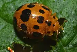 Epilachna borealis is a species of plant eating lady beetle that can commonly be found in the eastern United States. It is yellow with seven large black spots on each elytron and four small black spots on the pronotum. The species feeds on cucurbitaceous plants. Its common name is squash beetle.[1] It is often mistaken for other types of ladybug or a cucumber beetle because of its similar appearance.
