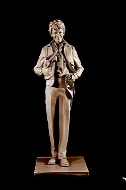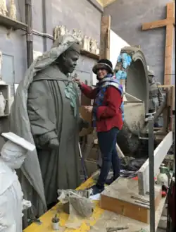 The state of California is currently represented by statues of former U.S. President Ronald Reagan and Catholic Saint, Father Junipero Serra. The Serra statue has remained in the National Statuary Hall since 1931. The statue of Ronald Reagan is a "replacement statue" and was gifted to the Capitol in 2007. In 2015, California State Senator Ricardo Lara's bill to replace the statue of Father Serra with a statue of Sally Ride was introduced in California's Senate Government Organization Committee and passed 10–0.[22] The bill then went to the California Senate where it narrowly passed. The bill was never heard in the Assembly due to opposition from the Catholic caucus. Pope Francis was scheduled to canonize Rev. Junipero Serra and bless the Serra statue in National Statuary Hall.[23] If Sally Ride were to be added to The Collection, she would be the first statue of a known LGBT person. Ride, who earned a Doctorate in Physics from Stanford University is most remembered for her contributions to science and being the first U.S. woman astronaut in space.[22][24]
