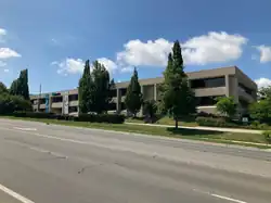 In 1962, Equitable purchased a property at the northwest corner of Westmount Road and Erb Street to build a new head office. The purchase was made in partnership with Waterloo Mutual Insurance, which purchased the adjacent property to the north.[15] By 1964, plans were underway to leave their old headquarters,[16] however, it was not until June 1970 that the company unveiled its design. The unveiling coincided with the company's 50th anniversary. The building was designed by Searle Wilbee Rowland of Toronto. Walter Fedy McCargar and Hachborn served as consulting engineers, William Wayne Kilborn acted as the interior design consultant, Anders Kalm was the landscape architect, and Lavern Asmussen Limited was given the building contract.[17] On Monday, 6 December 1971, Equitable moved into its new building.[18] The opening ceremonies were held on Monday, 10 January 1972.[19] In 1972, Waterloo Mutual, which had left its site vacant, sold its lot to a subsidiary of Equitable Life.[20] The property was used by Equitable to build the Beacon Tower apartment building, named after Equitable's lighthouse logo.