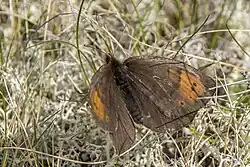 Erebia pandrose, the dewy ringlet, is a member of the subfamily Satyrinae of the family Nymphalidae . It is found from the Arctic areas of northern Europe, the Pyrenees, Alps, the Apennine Mountains, the Carpathian Mountains, Kola Peninsula and Kanin Peninsula, part of the Ural and the Altai and Sayan Mountains up to Mongolia.