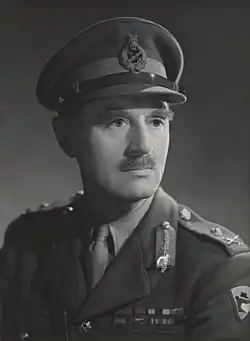 Returning to England in 1930, he spent until early 1934 as a GSO2 at the War Office, during which time he was promoted to brevet lieutenant colonel in July 1931,[16] before attending the Imperial Defence College, later in 1934.[2] In 1936, now a permanent lieutenant colonel, [17] he was given a field command, being appointed Commanding Officer (CO) of the 1st Battalion, Royal Berkshire Regiment, then stationed in Southern England, with Major Miles Dempsey as second-in-command (2-i-c).[2] Handing over command of the battalion to Dempsey in early 1938, he was promoted to colonel[18] and posted to Malaya where he became a GSO1 with Malaya Command.[3][19]