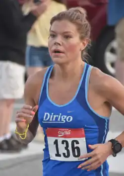 Her first major marathon came at the 2013 Boston Marathon, where she placed 25th in a time of 2:44:35.[7] Later that year, she won the Maine Women's division of the Beach to Beacon 10K in her home state of Maine.[8]