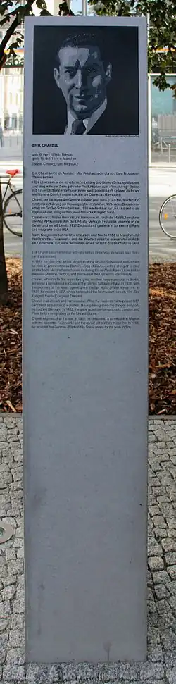 On 18 November 2015, Friedrichstadt-Palast Berlin inaugurated a memorial at Friedrichstraße 107 dedicated to the theatre's founders, Max Reinhardt, Hans Poelzig and Erik Charell.