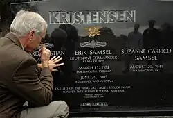 Erik Samsel Kristensen (March 15, 1972 – June 28, 2005) was a lieutenant commander of the United States Navy SEALs who was killed in action during Operation Red Wings. He and several other SEALs set off as part of a search and rescue mission, hoping to assist a four-man SEAL team that was engaged in a firefight with Taliban fighters.
