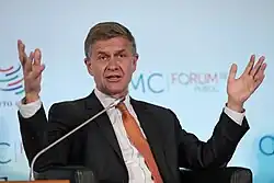 Erik Solheim (born 18 January 1955) is a Norwegian diplomat and former politician. He served in the Norwegian government from 2005 to 2012 as Minister of International Development and Minister of the Environment, and as Under-Secretary-General of the United Nations and Executive Director of the United Nations Environment Programme from 2016 to 2018.[1] Solheim is a member of the Green Party. Erik Solheim has 4 children from two marriages.