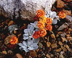 It grows in rocky serpentine soils at elevations of 2,185–2,900 metres (7,169–9,514 ft), in subalpine coniferous forest, upper montane coniferous forest, and alpine fell-field habitats.[3] The Trinity Mountains are a range of the Klamath Mountains System.