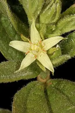 Eriosemopsis is a monotypic genus of flowering plants in the family Rubiaceae. It was described by Walter Robyns in 1928 and no changes have been made since then. The genus contains only one species, viz. Eriosemopsis subanisophylla, which is native to southeastern Eastern Cape and southern KwaZulu-Natal provinces of South Africa.[1] The species is morphologically similar to the species Pygmaeothamnus zeyheri but differs by having a thick indumentum, raised venation and elliptical leaves.[2]