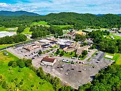 Cherokee County’s first medical institution was Petrie Hospital, founded in November 1933 by Dr. R.W. Petrie, an eye, ear, nose, and throat specialist. The hospital was a two-story white brick building atop a hill on Peachtree Street in downtown Murphy. It started with four registered nurses and a capacity of 21 patients.[6] The Sisters of Providence of Holyoke came to Murphy in 1956 to manage Petrie Hospital and renamed it Providence Hospital.[7] The 22-bed Murphy General Hospital was built by Dr. F. V. Taylor in 1941 and closed in July 1969 due to insufficient staff and property.[8][9] In 1956, a 30-bed non-profit regional hospital named District Memorial Hospital was constructed in nearby Andrews.[10][8] Citing uncollected payments, District Memorial declared bankruptcy in 2000.[11] Murphy Medical acquired District Memorial's assets in 2002 before District Memorial closed in June 2003, and was demolished in late 2008.[12][13]